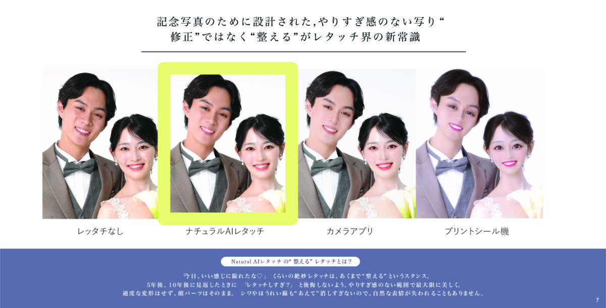 ウェディングアベニューでは、こちらのナチュラルAIレタッチの中でも、最も多くの機能を搭載した最新モデルを全国のスタジオに投入。